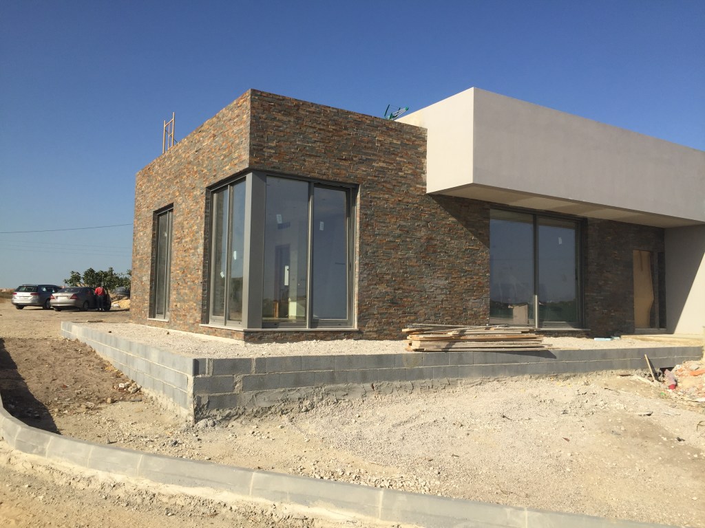 Moradia V4, incluiu cave e área de garagem, terminada em 2016. Caracteriza-se pelo seu design moderno e apelativo. Incluiu também a construção do muro que delimita o terreno, com porta de serviço.