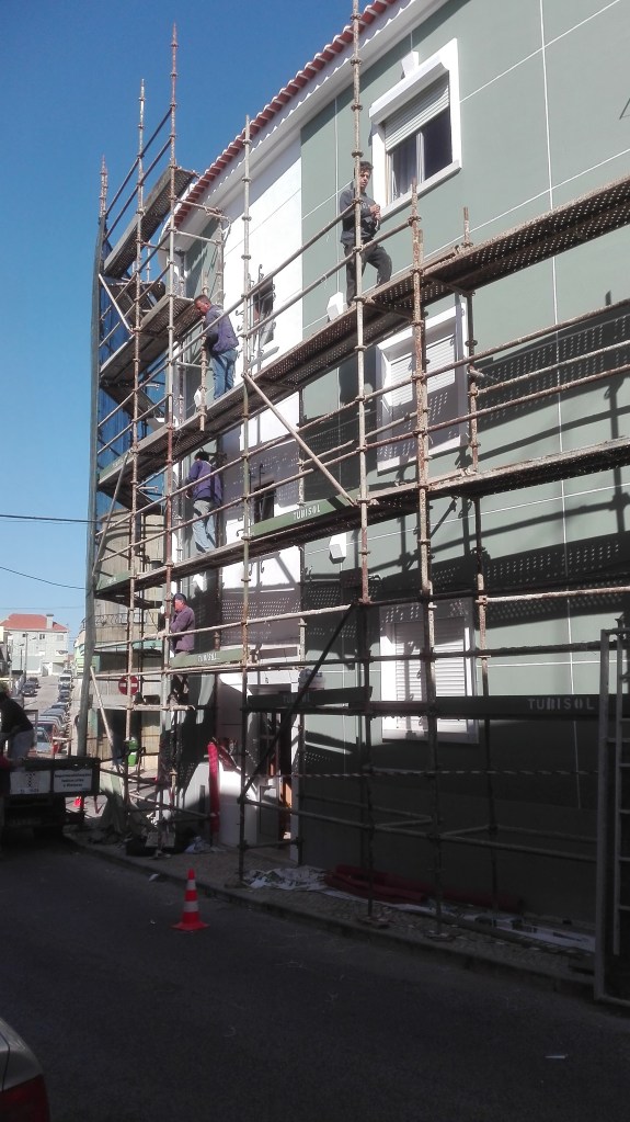Renovação da pintura da fachada de prédio em Lisboa.